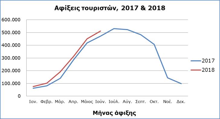 Με βάση τα αποτελέσματα της Έρευνας Ταξιδιωτών, για την περίοδο Ιανουαρίου – Ιουνίου 2018 οι αφίξεις τουριστών ανήλθαν σε 1.645.149 σε σύγκριση με 1.463.206 την αντίστοιχη περίοδο του 2017, σημειώνοντας αύξηση 12,4%, αλλά και ξεπερνώντας τις αφίξεις που καταγράφηκαν ποτέ στην Κύπρο κατά τους πρώτους έξι μήνες του έτους.