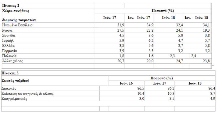 Οι αφίξεις από το Ηνωμένο Βασίλειο αυξήθηκαν κατά 9,9% τον Ιούνιο 2018 σε σχέση με τον Ιούνιο 2017, ενώ παρατηρήθηκε και αύξηση 20,2% από τη Σουηδία. Αυξήσεις σημειώθηκαν επίσης και από άλλες σημαντικές αγορές όπως η Ελλάδα (4,7%) και η Πολωνία (36,4%).