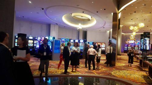 Οι κ. Ho και Ballantyne φιλοξένησαν εκπροσώπους των ΜΜΕ στο προσωρινό καζίνο, το οποίο θα αποτελέσει προπομπό του πολυθεματικού καζίνου "City of Dreams Mediterranean", που θα λειτουργήσει το 2021.