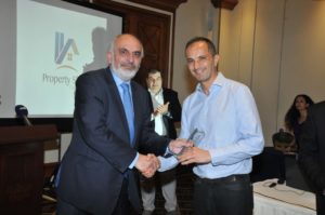 Ο Γενικός Διευθυντής του Υπουργείου Οικονομικών κ. Χρίστος Πατσαλίδης απονέμει το βραβείο στον κ. Γιάννο Πίπη εκ μέρους της εταιρείας Nice Day Developments