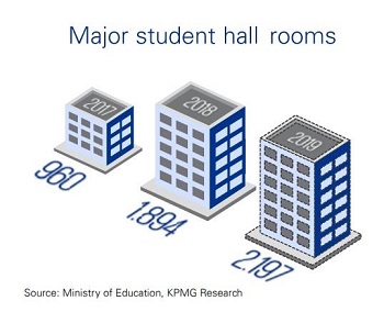 Σύμφωνα με έκθεση της KPMG, από το 2017 μέχρι και το 2018, ο αριθμός των φοιτητικών καταλυμάτων αυξήθηκε εντυπωσιακά, αγγίζοντας το 97%, ενώ εκτιμάται ότι το 2019 ένα επιπλέον ποσοστό της τάξης του 16% θα προστεθεί στον αριθμό των χώρων διαμονής φοιτητών.