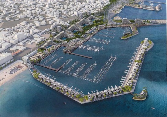 Όπως φαίνεται από τις εικόνες, η περιοχή της μαρίνας θα αλλάξει ριζικά με ξενοδοχεία, πισίνες και τρεις πύργους. Δίπλα θα αναπτυχθεί και το λιμάνι το οποίο θα δέχεται – σύμφωνα με τις εικόνες – και κρουαζιερόπλοια.